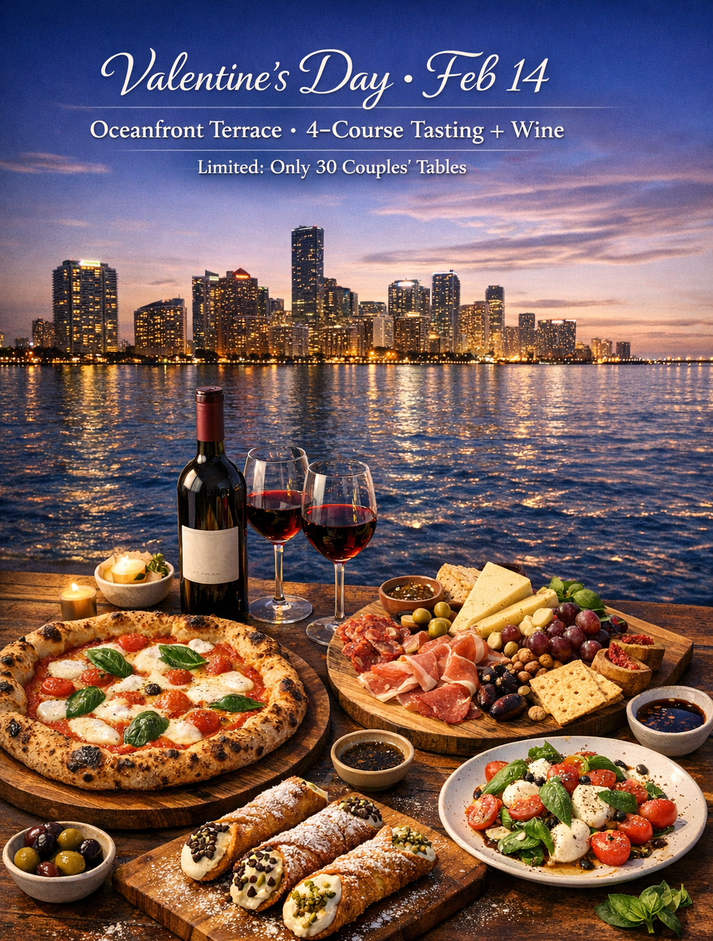 Oceanfront Valentine’s dinner for two, four-course Italian menu. 1 guest = 1 table for 2 (Feb 14)